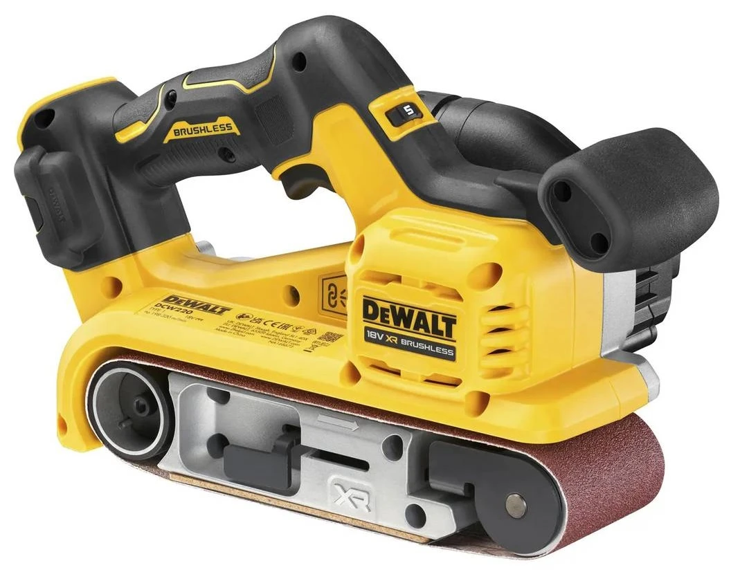Стрічкова шліфмашина DeWalt DCW220N працює на акумуляторній платформі XR Li-Ion 18 В та оснащена безщітковим двигуном. Регулювання швидкості стрічки 198–320 м/хв забезпечує точне налаштування процесу оброблення. Формат стрічки 75×533 мм ефективний під час роботи з великими поверхнями. Маса 3,46 кг сприяє стабільності інструмента. Акумулятор і зарядний пристрій постачаються окремо.