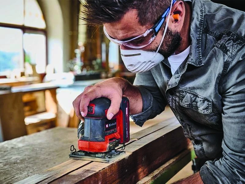 Шліфмашина вібраційна акумуляторна Einhell TE-OS 18/113 Li - Solo серії Expert є високоякісний, зручний інструмент, який поєднує в собі хорошу ергономіку з функціональністю, шліфувальна машина має коливальний контур 1,8 мм з встановленою шліфувальною пластиною 101 x 113 мм. Шліфувальна машинка Einhell TE-OS 18/113 Li - Solo ідеально підходить для шліфування плоских поверхонь з дерева та деревних матеріалів, а також для швидкого видалення фарби або лаку. Для забезпечення чистоти роботи вібраційна шліфувальна машина оснащена вбудованою системою видалення пилу з пилозбірником і знімним гофрованим фільтром. В якості альтернативи можна підключити пилосос Einhell для забезпечення максимальної чистоти.