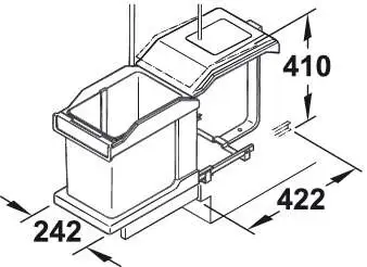 Смітник 3634-10 з важелем для автоматичного висуву сірий 20 л, 242 x 422 x 410 мм для ширини корпусу