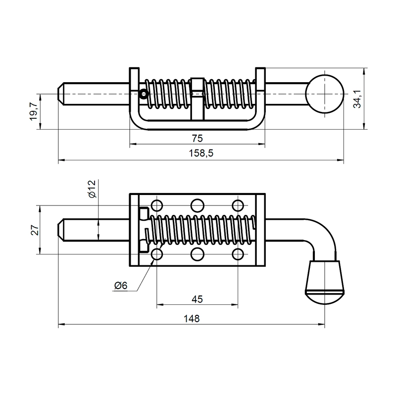 Шпінгалет пружинний RZ L14125 — це накладний запірний механізм зі сталевим корпусом і пружинним штоком, призначений для фіксації дверей або дверцят у закритому положенні. Завдяки внутрішній пружині шпінгалет автоматично повертається у вихідну позицію після натискання, забезпечуючи швидке та надійне защіпання без застосування ключа.