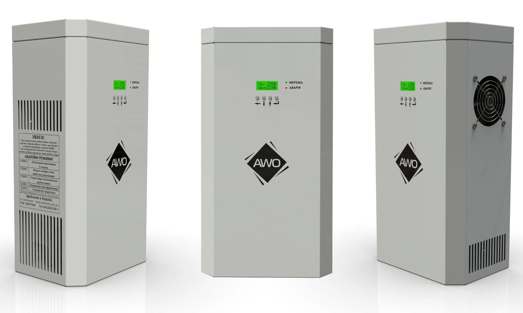 Awattom-16.5 формує стабільне трифазне живлення для систем, що працюють під високим навантаженням. Кожен модуль забезпечує окрему стабілізацію, що створює рівномірність роботи обладнання на всіх фазах. Мікропроцесорний контроль фіксує критичні стани та реагує з точністю 20 мс. Конструкція складається з трьох окремих блоків по 5.5 кВт, що надає гнучкість під час встановлення та експлуатації.
