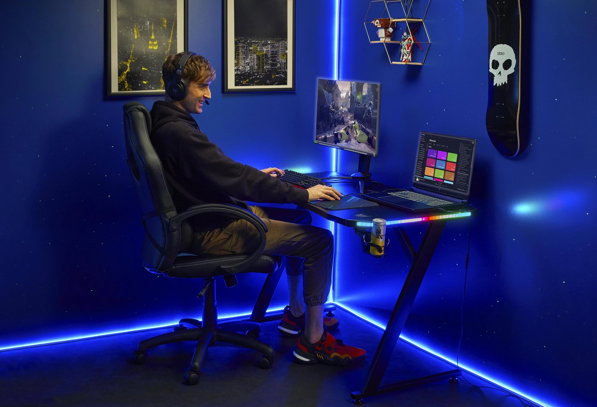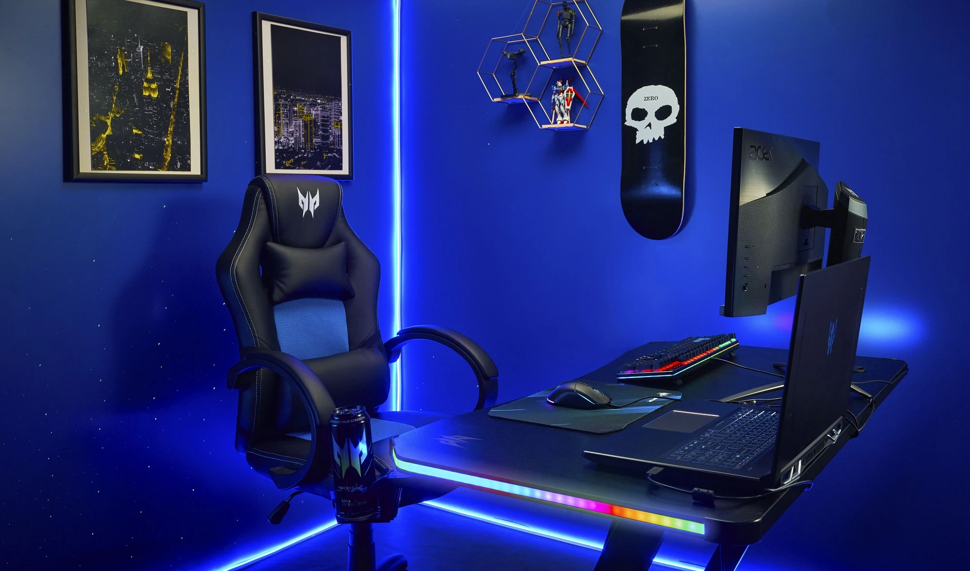 Acer Predator RGB Gaming Desk (GP.OTH11.06T) — ігровий стіл розміром 120×60 см з RGB-підсвіткою (3 режими) для створення атмосферного геймерського сетапу. Міцна конструкція витримує кілька моніторів та важке обладнання, має вбудований тримач для навушників та підставку для напоїв. Подвійні отвори для кабелів забезпечують охайне управління проводами. Чорний дизайн ідеально поєднується з будь-яким Predator-сетапом. Ергономічна форма та стабільність роблять його найкращим вибором для професійного геймінгу.