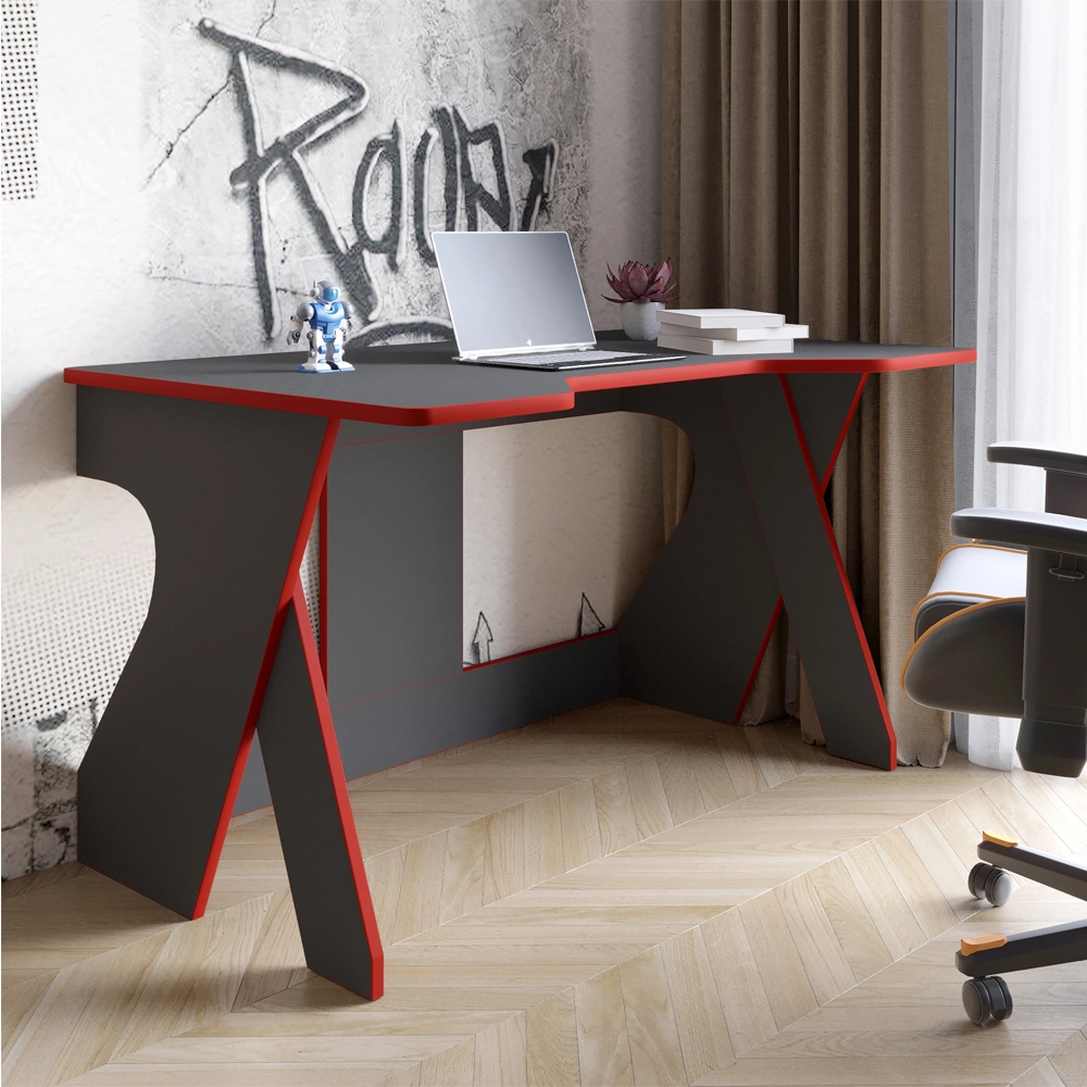 Стіл геймерський LION Крід для комп'ютера та ноутбука 130х80х74,5 Антрацит/Червоний (LION-041729)
