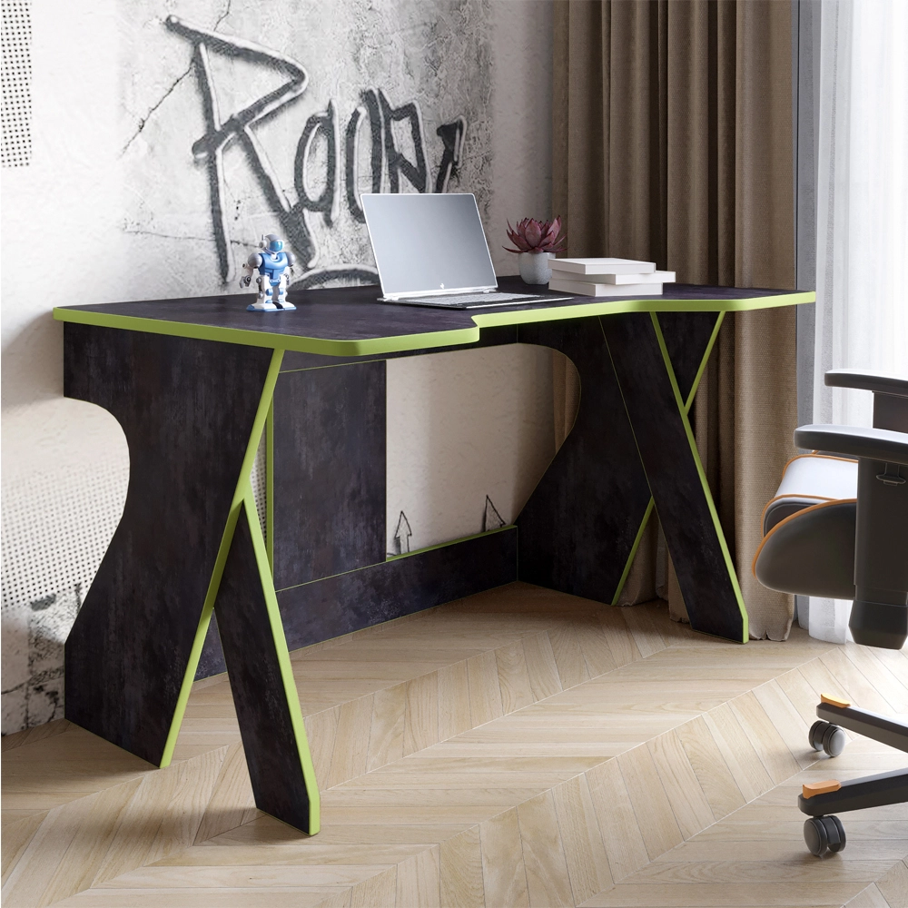 Стильный дизайн в темном бетонном цвете с зелеными акцентами придает современности вашему интерьеру, делая стол не только практичным, но и эстетически привлекательным элементом вашей комнаты. Этот стол станет отличным дополнением к вашему геймерскому уголку, подчеркивая ваш уникальный стиль.