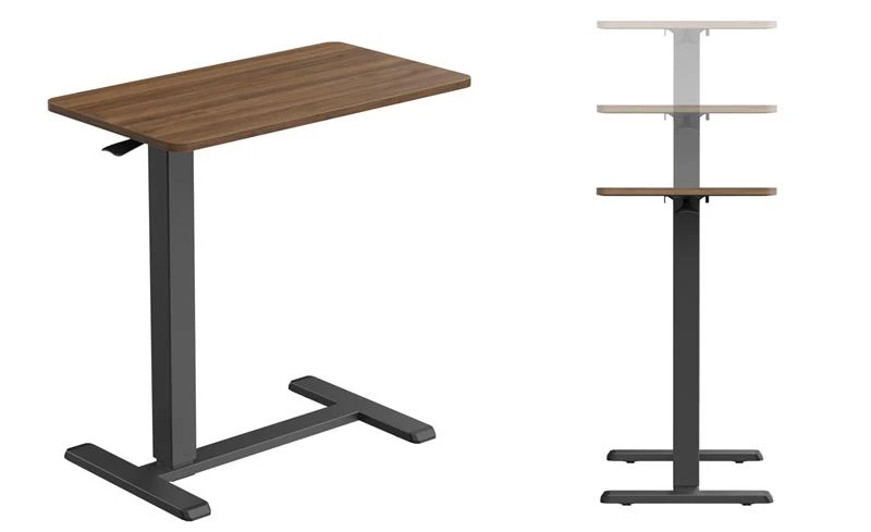 Компактний стіл із ламінованою стільницею чорно-коричневого кольору та металевою рамою забезпечує комфортну роботу сидячи або стоячи завдяки плавному механічному регулюванню висоти (710–1 060 мм). Стійка конструкція, приховані коліщатка та сучасний дизайн роблять його зручним для використання вдома чи в офісі. Максимальне навантаження – до 8 кг, вага – 10,2 кг, гарантія – 24 місяці.