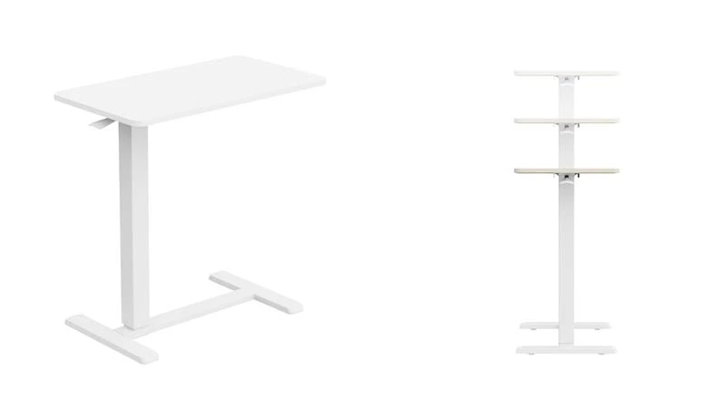 Компактний стіл із білою ламінованою стільницею та металевою рамою забезпечує комфортну роботу сидячи або стоячи завдяки плавному механічному регулюванню висоти (710-1060 мм). Стійка конструкція, приховані коліщатка та сучасний дизайн роблять його зручним для використання вдома чи в офісі. Максимальне навантаження – до 8 кг, вага – 10,2 кг, гарантія – 24 місяці.