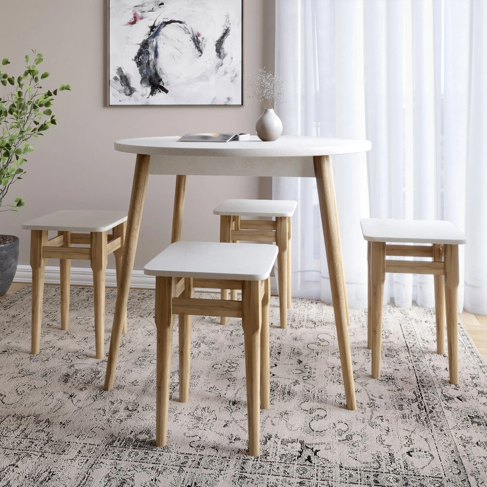 Ищете идеальный обеденный комплект для вашей кухни? Круглый стол с четырьмя табуретами Майами-1 станет отличным выбором для тех, кто ценит стиль и функциональность. Благодаря качественному покрытию из ПВХ, этот комплект не только эстетически привлекателен, но и устойчив к повреждениям, что делает его идеальным для ежедневного использования.