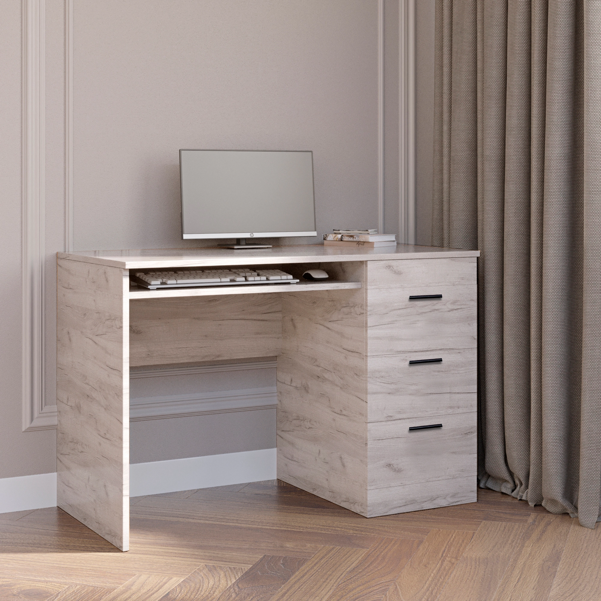Шукаєте ідеальний стіл для роботи або навчання? Письмовий стіл Еверест Соната стане вашим надійним партнером у досягненні цілей. Завдяки сучасному дизайну та елегантному кольору дуба крафт білого, він органічно впишеться в будь-який інтер'єр, створюючи затишну атмосферу для творчості та продуктивності.