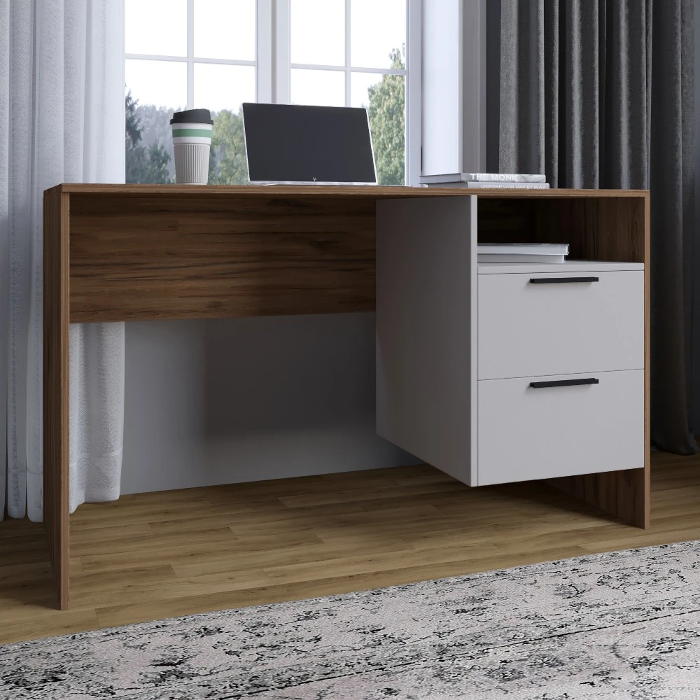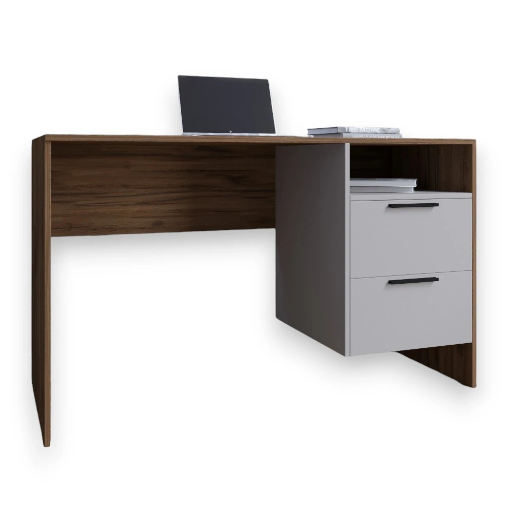 Стол изготовлен из высококачественных материалов, обеспечивающих надежность и долговечность. Слева расположена удобная ниша для хранения документов и канцелярии, позволяющая поддерживать порядок и организацию на рабочем месте. Благодаря эстетическому сочетанию краш-дуба и кашемира, стол не только практичный, но и элегантный.