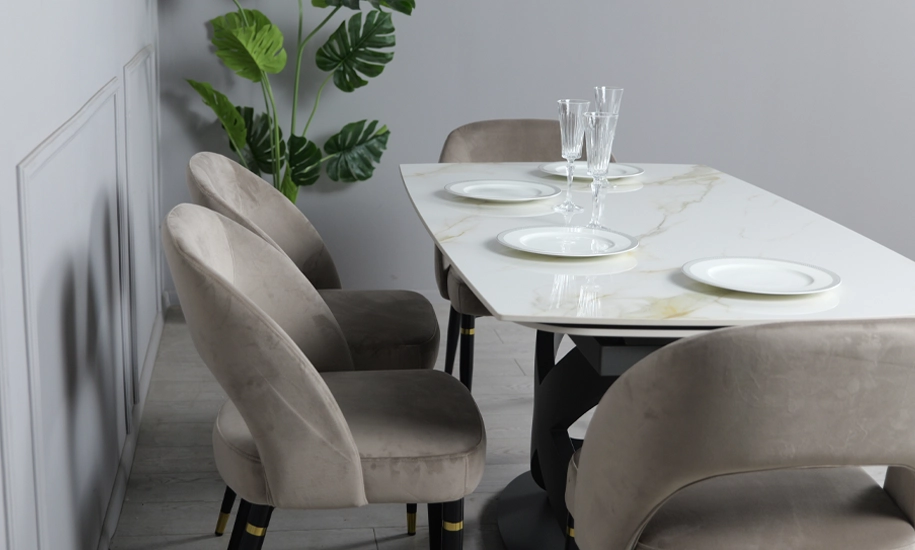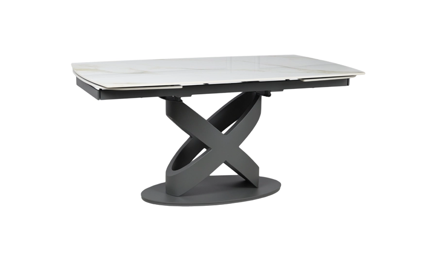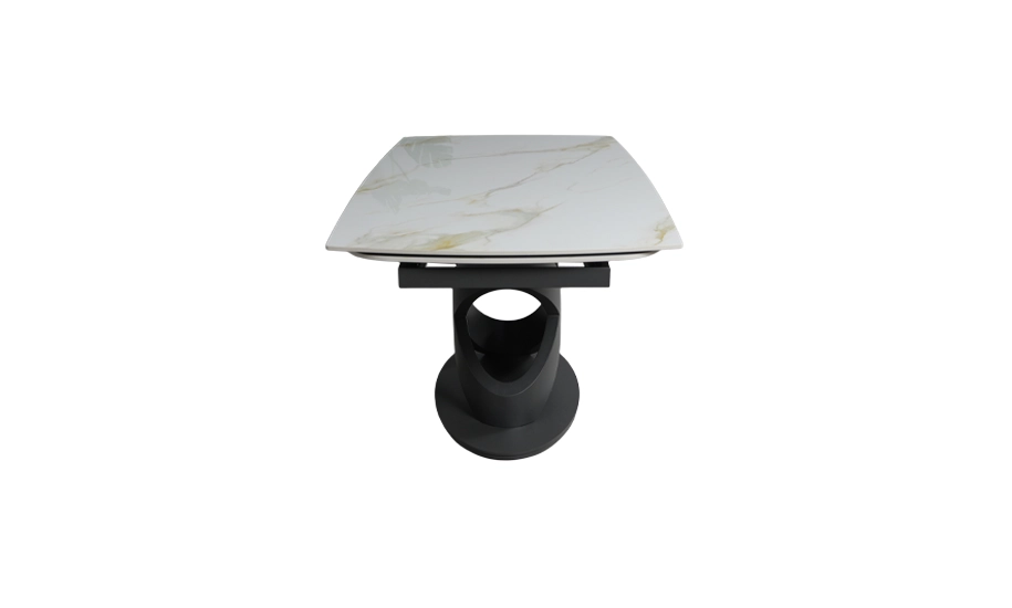 Ця модель вирізняється глянцевою керамічною стільницею молочного кольору, що додає приміщенню світла, легкості та вишуканості. Завдяки овальній формі та м’яким лініям, стіл виглядає гармонійно в будь-якому інтер’єрі — від класики до модерну. Керамічна поверхня не лише красива, а й функціональна: вона стійка до подряпин, високих температур і вологи, легко очищується та не потребує спеціального догляду.
