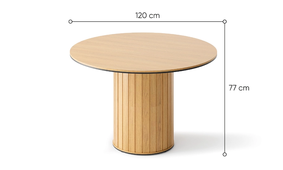 - Класичний діаметр 120 см ідеально підходить для 4–6 персон. Такий розмір створює достатньо місця для кожного - і водночас зберігає відчуття близькості.