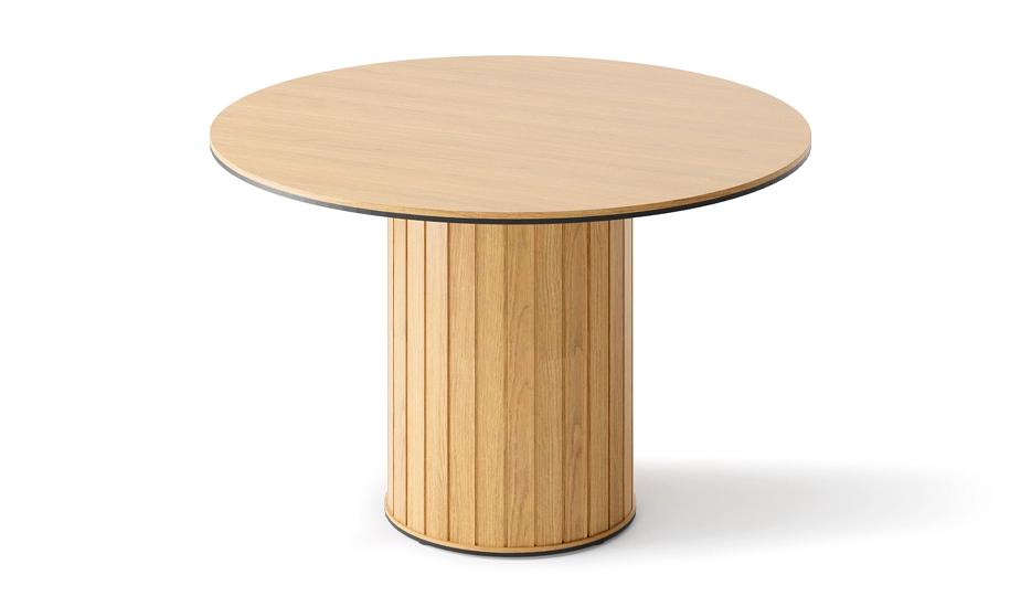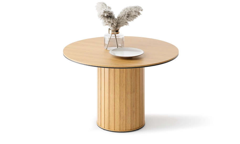 - Основа столу - масивний циліндр із вертикальними ламелями, що надають фактурності й характеру. Стіл виглядає не просто функціонально, а по-справжньому дизайнерськи.