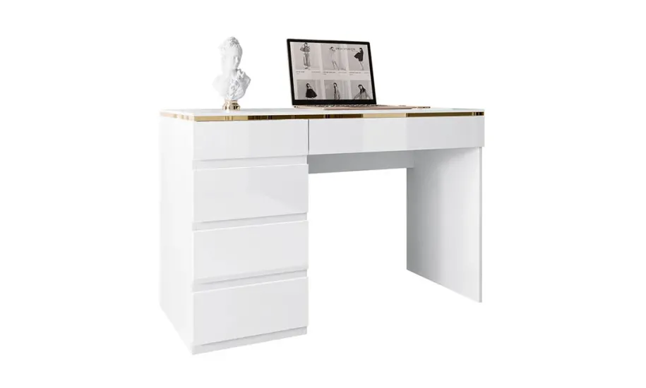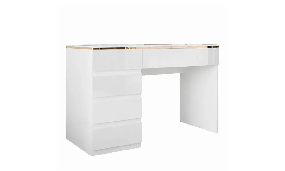Стіл туалетний/письмовий Моніка 5Ш білий глянець/золото