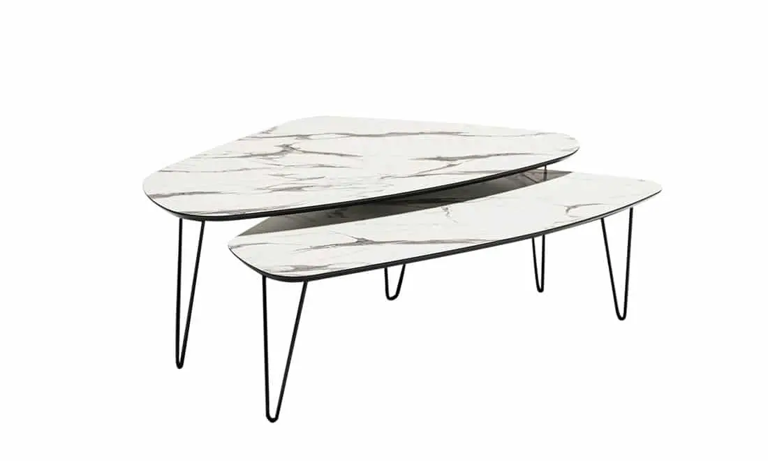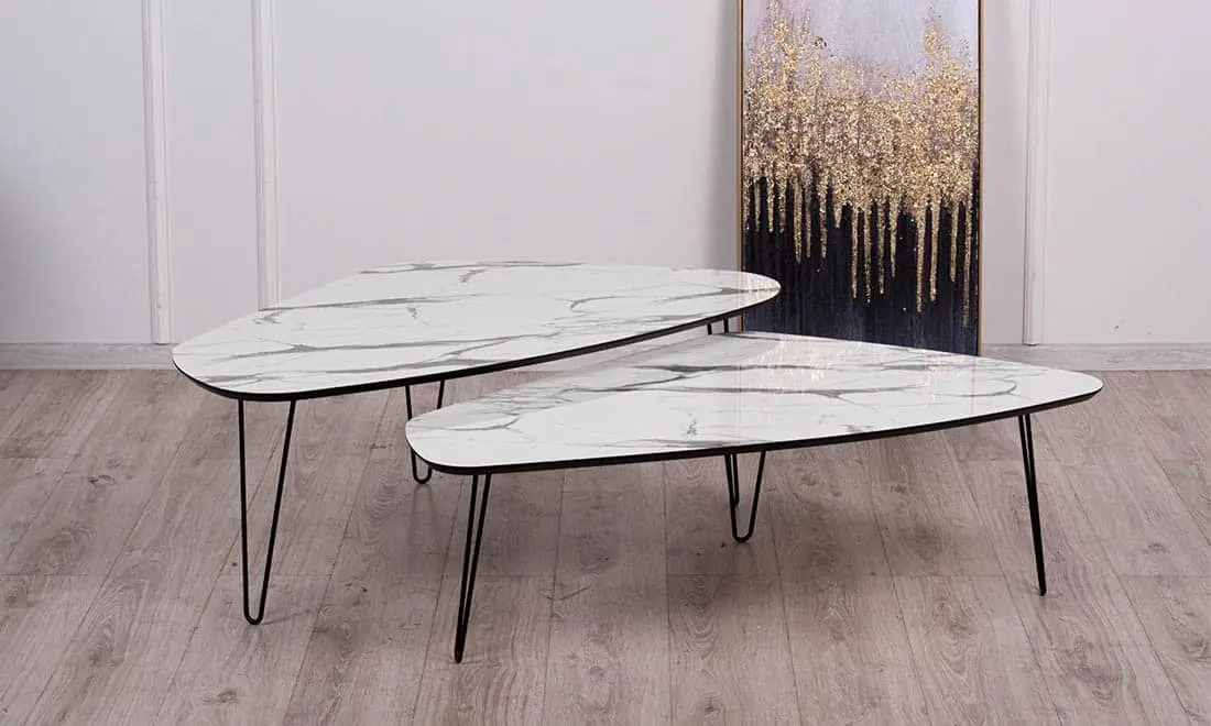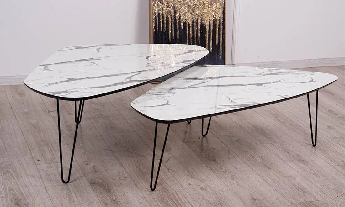 Витончений журнальний столик, виготовлений із сучасних матеріалів, які безпечні для здоров’я та характеризується довгим терміном експлуатації. Гармонічне поєднання білої мармурової стільниці з чорними металевими ніжками. Стіл максимально стійкий до негативних факторів впливу. Глянцева поверхня не потребує особливого догляду та не втрачає естетичну привабливість на протязі тривалого використання.