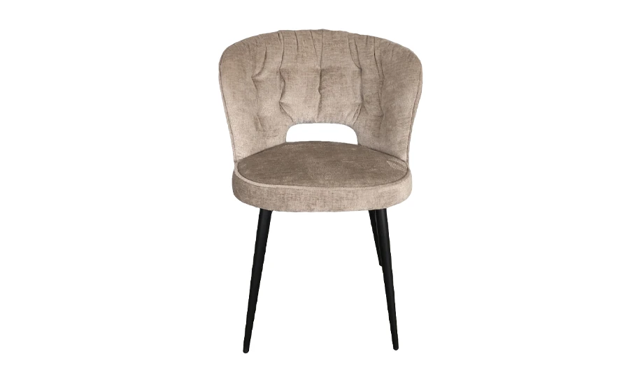 Стілець Альдо — це поєднання витонченого дизайну та комфорту, яке створює атмосферу спокою і гармонії у вашому домі. Завдяки обтічним формам, м'якому сидінню та теплій бежевій оббивці він стане стильним акцентом у кухні, студії або обідній зоні. Контраст чорних металевих ніжок і ніжного кольору тканини надає стільцю сучасного вигляду та робить його універсальним для різних інтер'єрів.