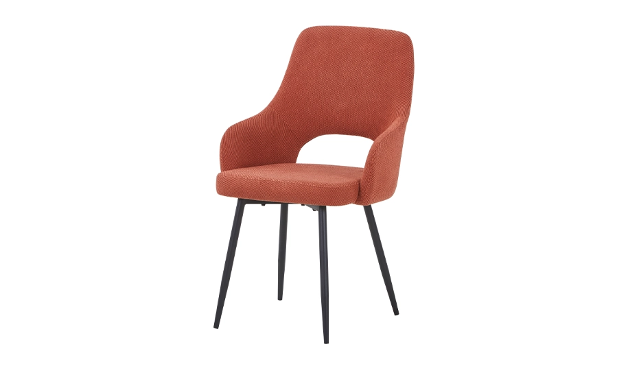 - Теракотовий колір гармонійно поєднується з деревом, світлими й темними поверхнями, роблячи цей кухонний стілець з підлокітниками універсальним рішенням для сучасних інтер’єрів.