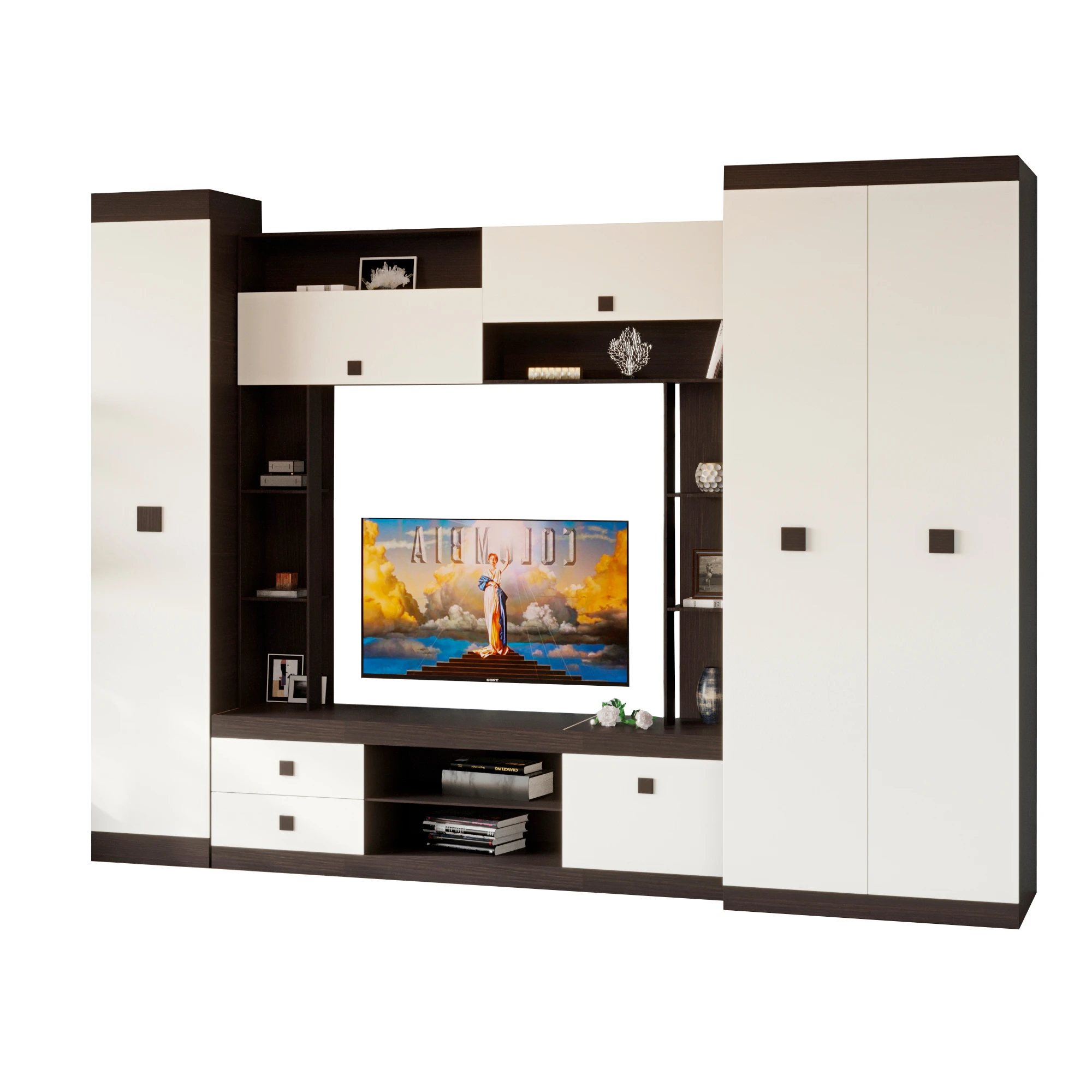 Стінка для вітальні Еверест Соната 3 (модульна - 3 елементи) венге темний + білий (DTM-2514)