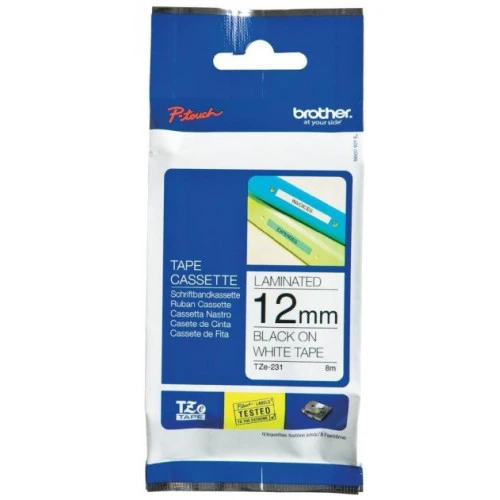 Ламінована клейка стрічка білого кольору. Сумісність: P-touch 1010/1280/2430/2700/9700, PTE110VPR1, PTH110R1, PTD210R1, PTD210VPR1, PTD450VPR1, PTD600VPR1, PTP700R1.
