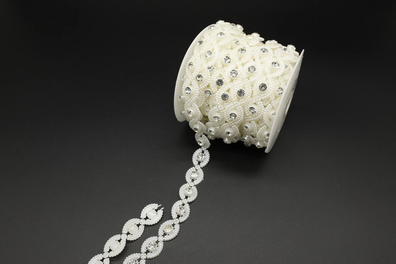 Стрічка з намистин – це елегантний декоративний матеріал, який додає виробам вишуканості та розкішного вигляду. Намистини рівномірно закріплені на стрічці, що забезпечує зручність у роботі та акуратний вигляд готових виробів.