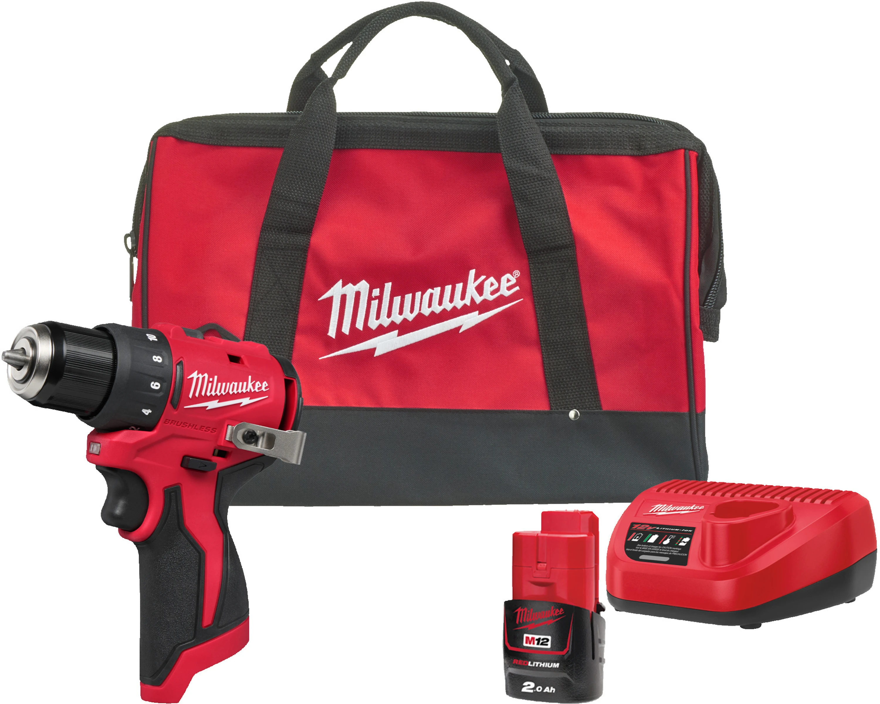 Шурупокрут-дриль акумуляторний Milwaukee M12 BLDDRC-201BRF 12В 2А·год 40Нм 0-1700об/хв ЗП С12 сумка