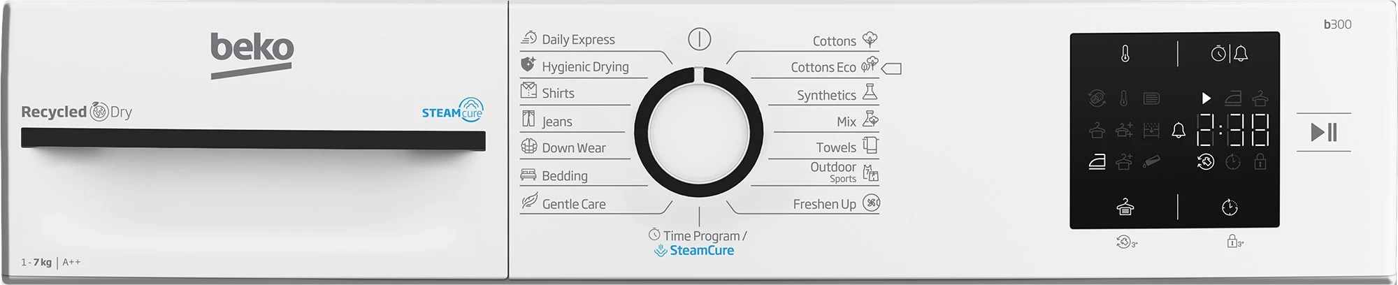 Сушильна машина Beko тепловий насос, 7кг, A++, 54.5см, дисплей, ф-ція ПАР, білий