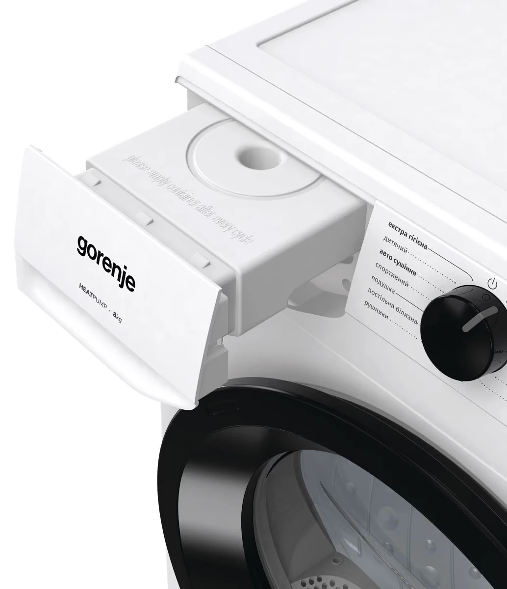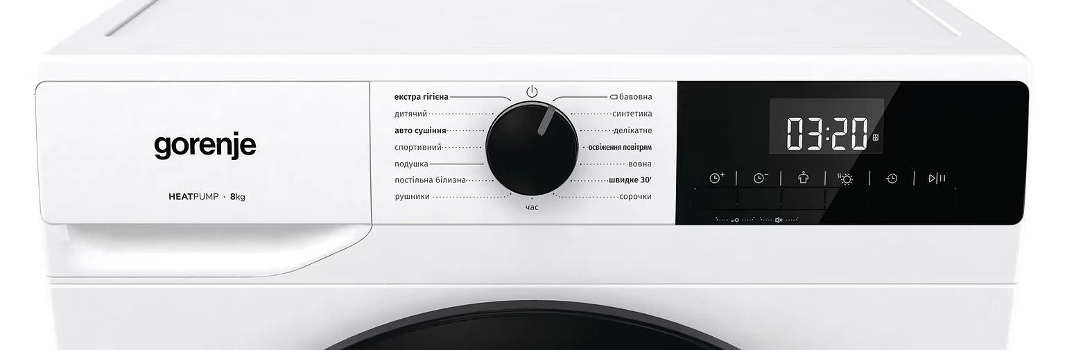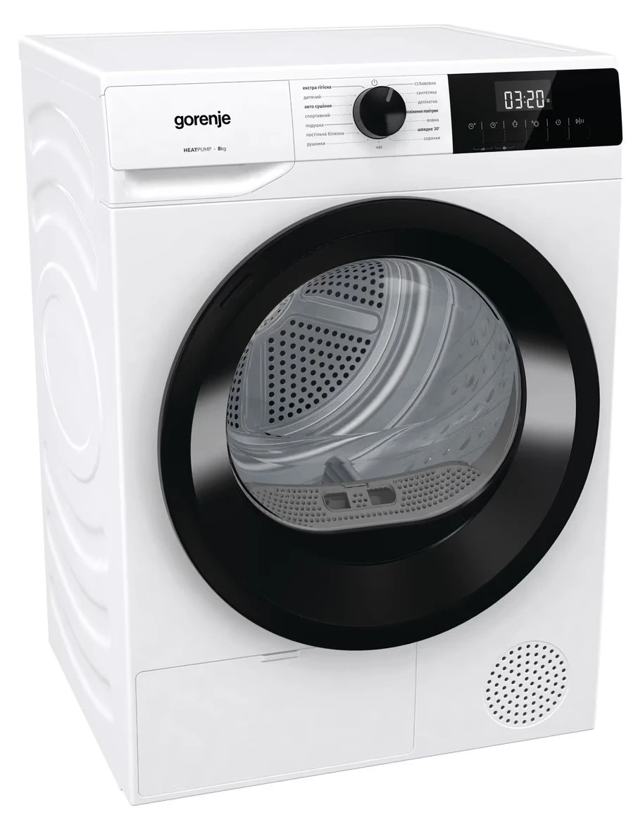 Сушильна машина Gorenje тепловий насос, 8кг, А++, 60см, дисплей, білий