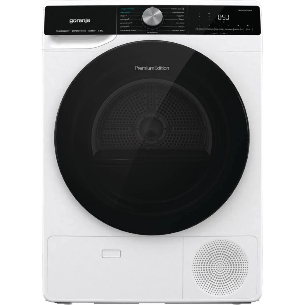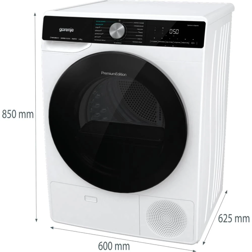 Сушильна машина Gorenje тепловий насос, 9кг, A++, 60см, дисплей, 15 програм, підсвітка барабану, біл