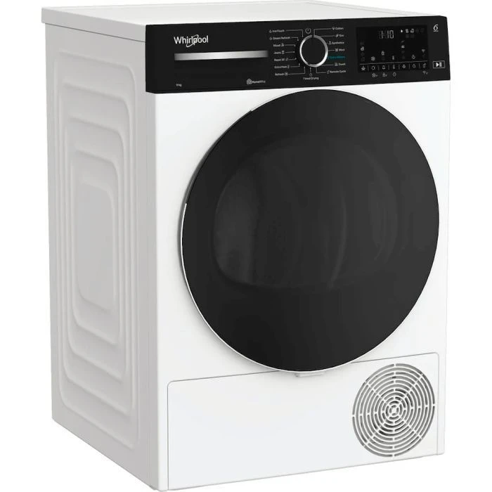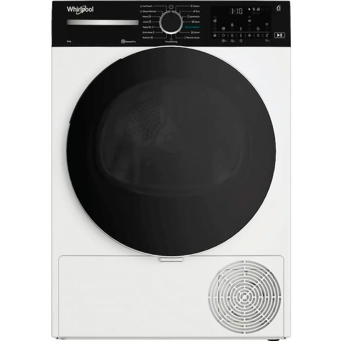 Сушильна машина Whirlpool тепловий насос, 9кг, A+++, 60см, дисплей, люк чорний, білий