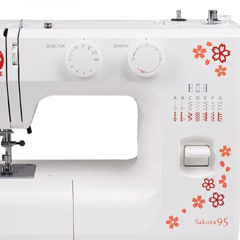 Швейна машинка Janome Sakura 95 — компактна електромеханічна модель із простим керуванням і необхідним функціоналом для якісного шиття різних типів тканин — від шовку до шкіри. Оснащена LED-підсвічуванням, вертикальним човником для тихої роботи, знімним вільним рукавом для обробки циліндричних виробів, заправлювачем нитки, ниткообрізувачем та системою швидкої зміни лапки.