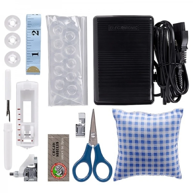 - Комплектація Набір голок; Педаль; Шпульки; лапка стандартна; Ін