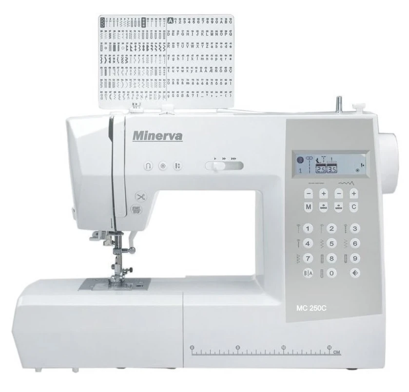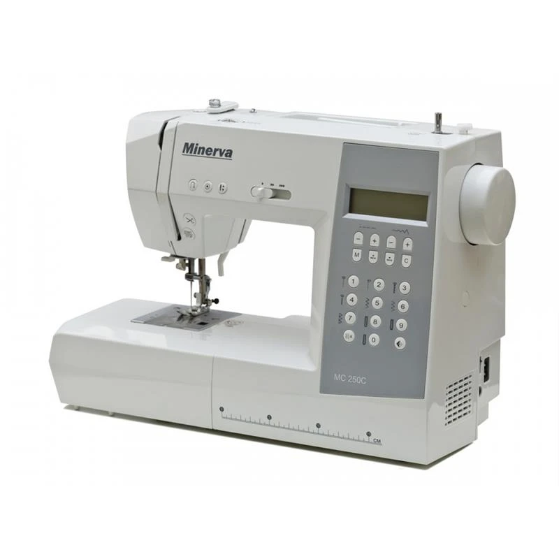 Швейна машина Minerva MC250C завдяки наявності блоку комп'ютерного управління може здійснювати 197 швейних програм, автоматично вимітувати 7 видів петель і вишивати 1 вид алфавіту. Крім того, вона здатна запам'ятовувати вибрані строчки і плавно змінювати довжину стібка до 4,5 мм і ширину рядка до 7 мм.