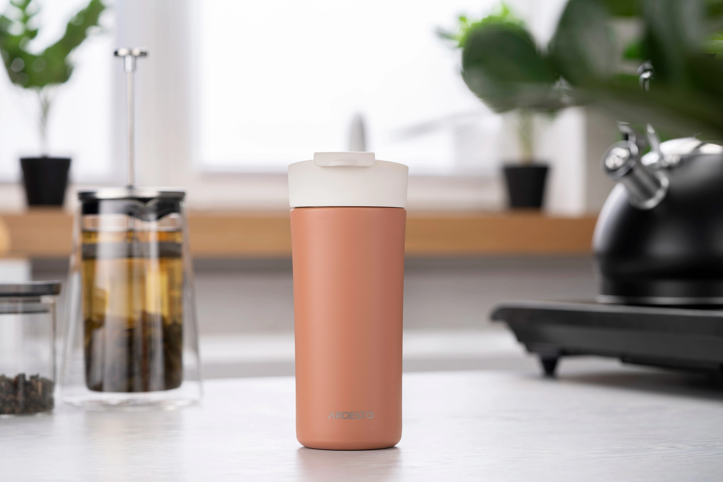 Термокухоль ARDESTO Viaggio виготовлено в ергономічному дизайні з якісної нержавіючої сталі. Механізм відкривання термокухля – зручна кришка-заскочка. Об’єм становить 400 мл. Термокухоль зберігає температуру гарячого напою 6 год, холодного – 10 год. Не містить BPA. Не рекомендовано мити в посудомийній машині.