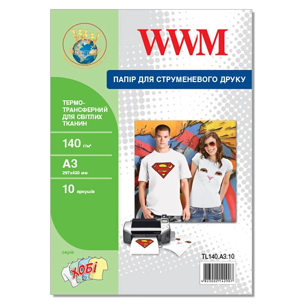 Термотрансфер WWM для світлих тканин 140Г/м кв, A3, 10л (TL140.A3.10)