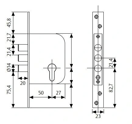 - Відстань між монтажними прорізами по вертикалі 82,7 мм