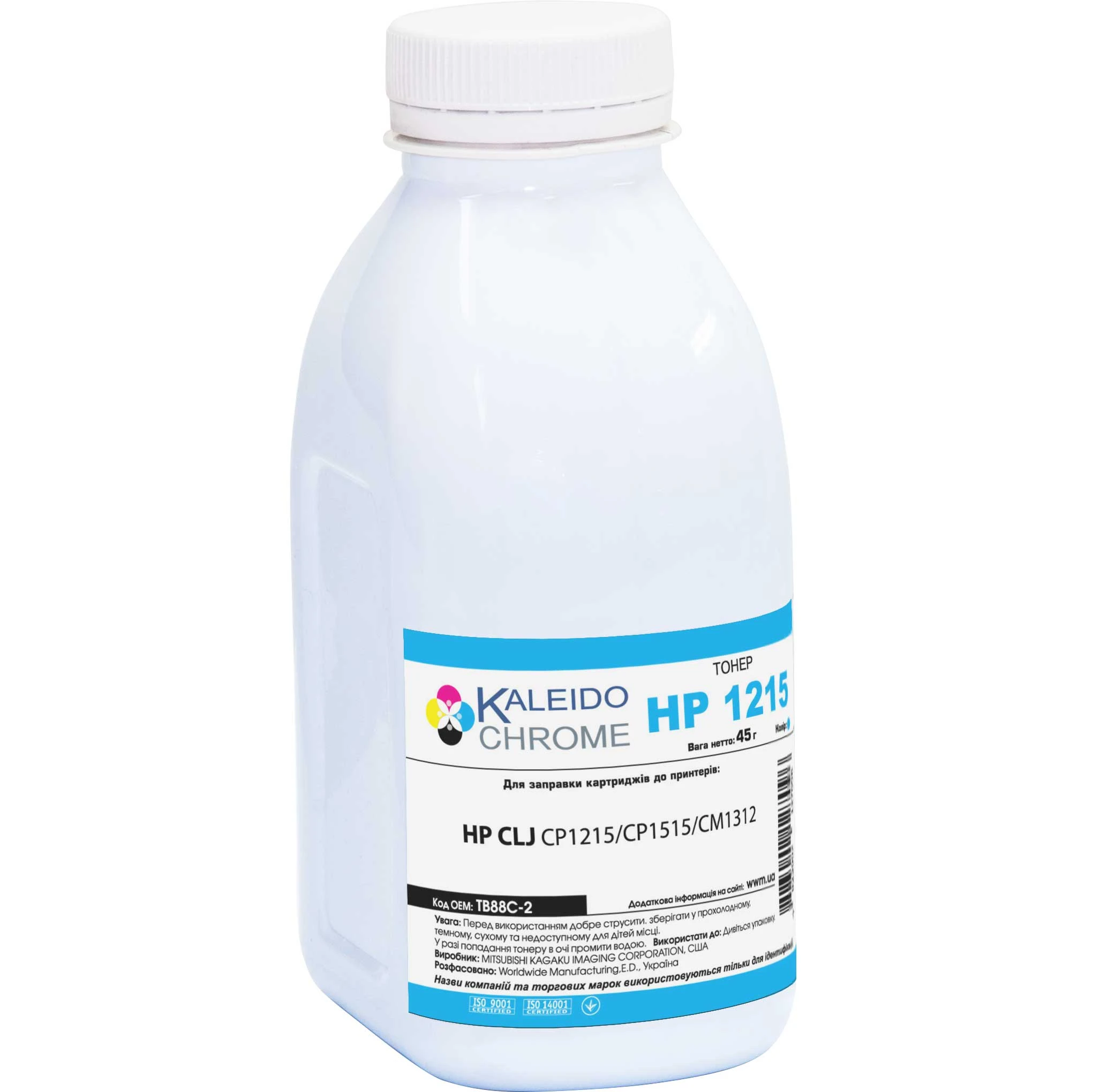 Тонер Kaleidochrome для HP CLJ CP1215/CP1515/CM1312 бутль 45г Cyan (TB88C-2)