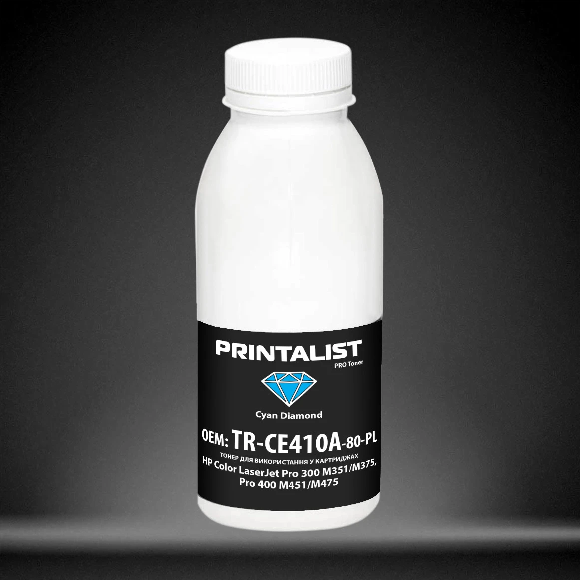Тонер PRINTALIST для HP CLJ Pro 300 M351/M375, Pro 400 M451/M475 бутль 80г Cyan (TR-CE410A-80-PL)