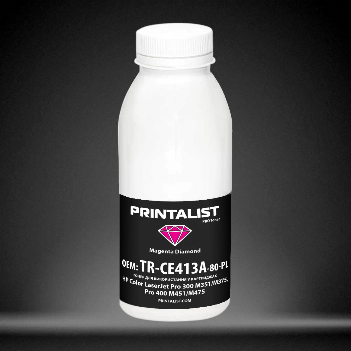 Тонер PRINTALIST для HP CLJ Pro 300 M351/M375, Pro 400 M451/M475 бутль 80г Magenta (TR-CE413A-80-PL)