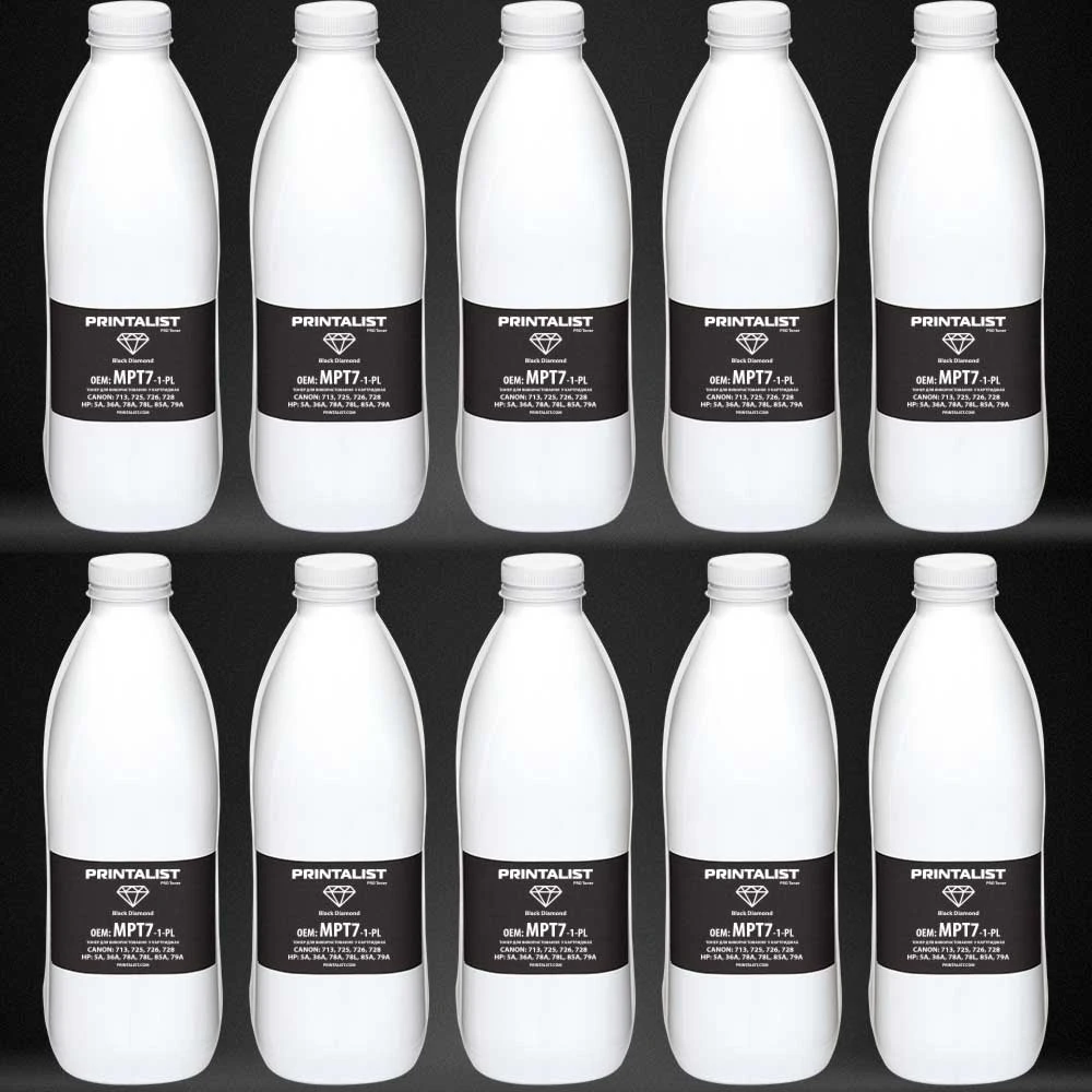 Тонер PRINTALIST для HP Universal/MPT7/MPT7-10KG бутль 10шт x 1000г Black (MPT7-1-10-PL)