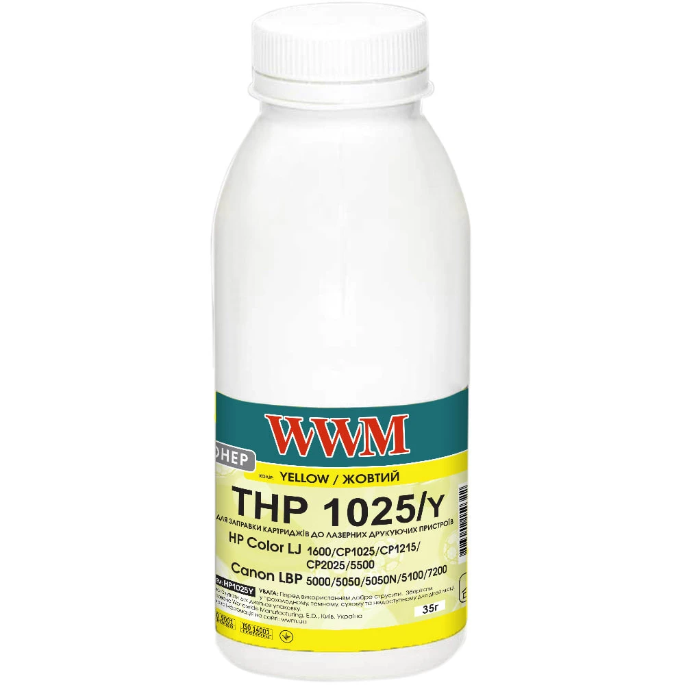 Тонер WWM для HP CLJ CP1025/Canon LBP 5050/7100 бутль 35г Yellow (HP1025Y)