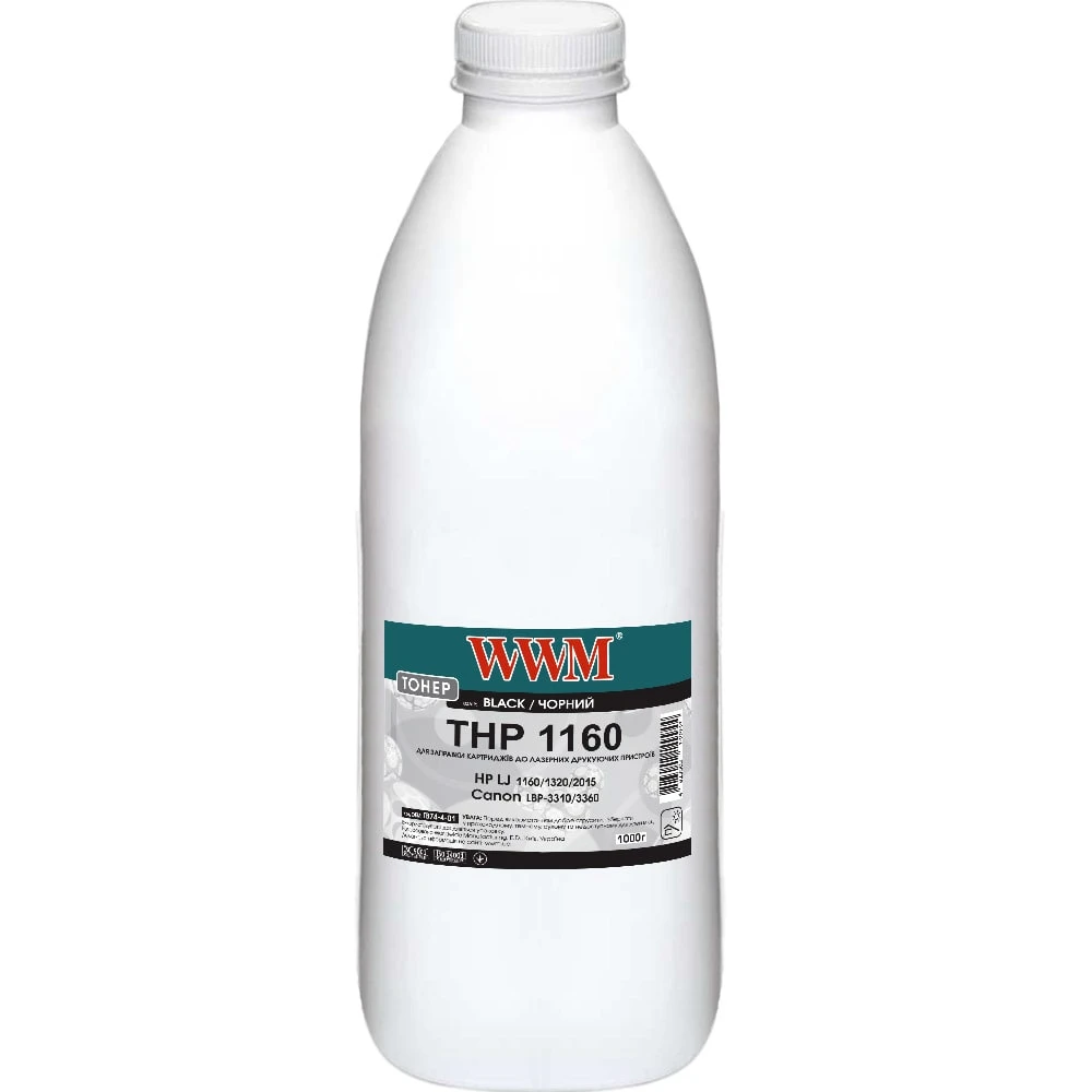 Тонер WWM для HP LJ 1160/1320/2015 бутль 1000г Black (TB74-4-01)
