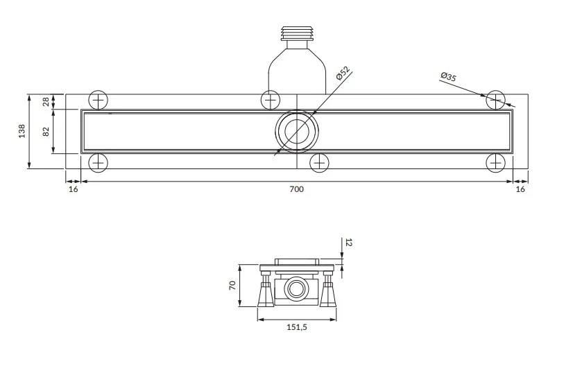 трап Omnires Lowfix для душу під плитку, 70 см, чорний (LOWFIX70TBL)