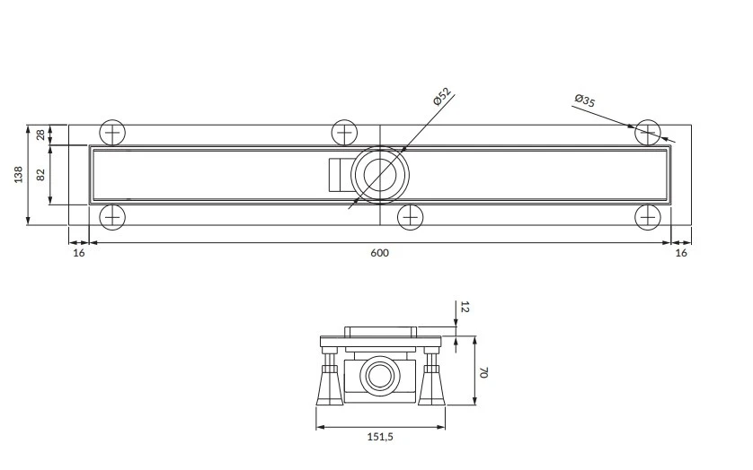 трап Omnires Lowfix для душу під плитку з повною кришкою, 60 см, чорний (LOWFIX60GBL)