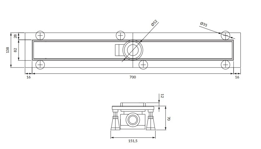 трап Omnires Lowfix для душу під плитку з повною кришкою, 70 см, чорний (LOWFIX70GBL)