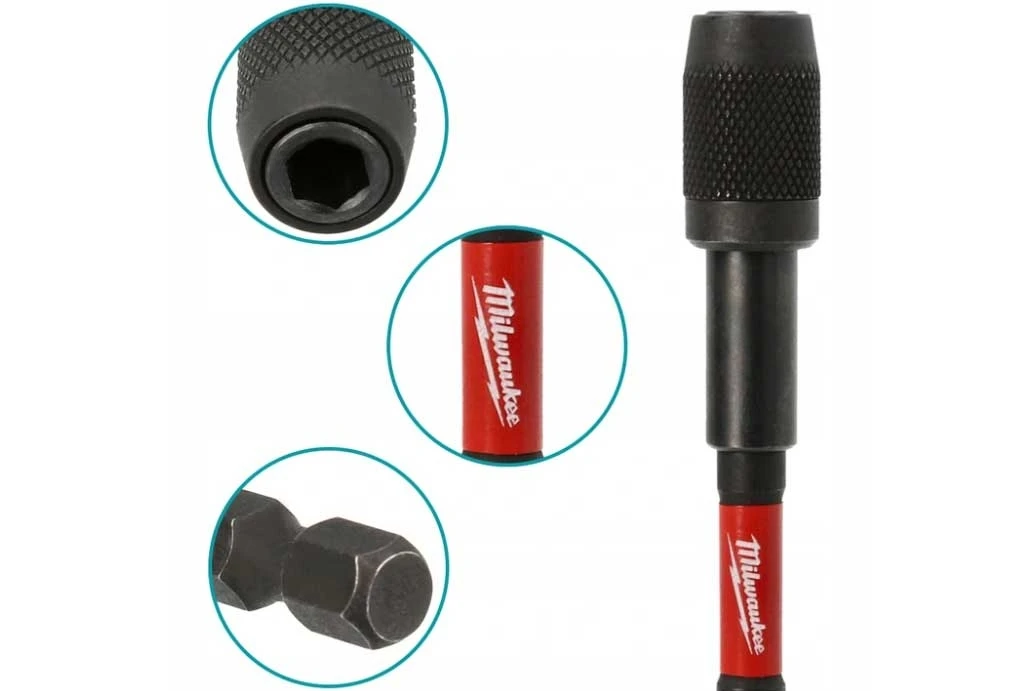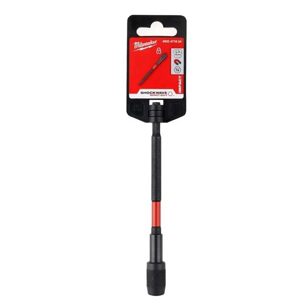 Магнітний тримач Milwaukee SHOCKWAVE 1/4" Hex 152 мм має подвійні магніти та механічний замок Auto-Locking, що надійно утримує біту й кріплення. Довга ударостійка конструкція забезпечує доступ до заглиблених гвинтів і сумісність із ударним інструментом.