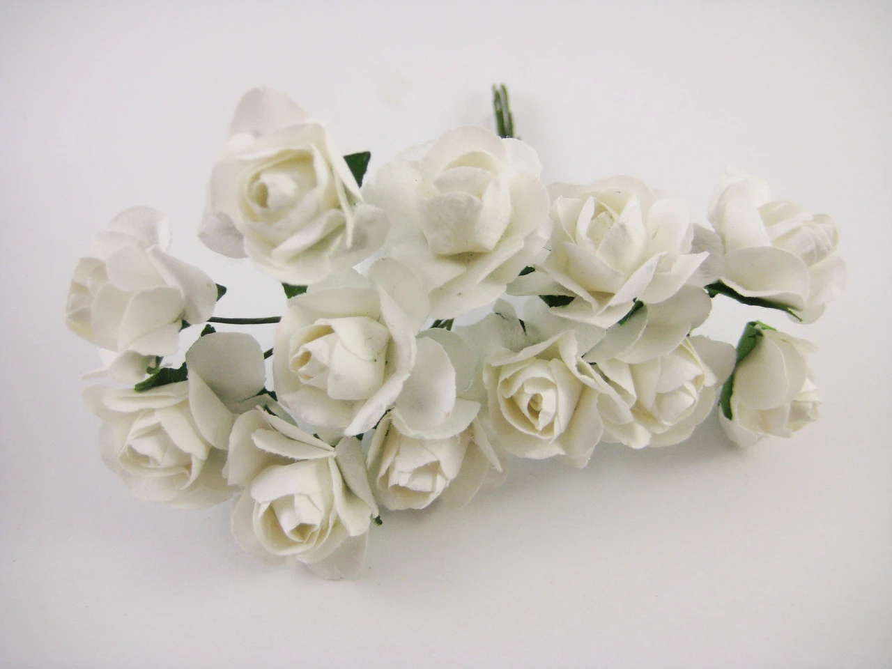 Квіти штучні на дроті, 12шт/пуч, Троянди, Колір "білий"