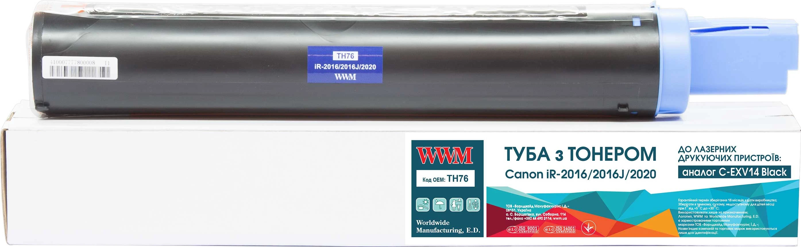 Туба з тонером WWM для Canon iR-2016/ 2016J/ 2020 аналог C-EXV14 Black ( 8300 ст.) (TH76)