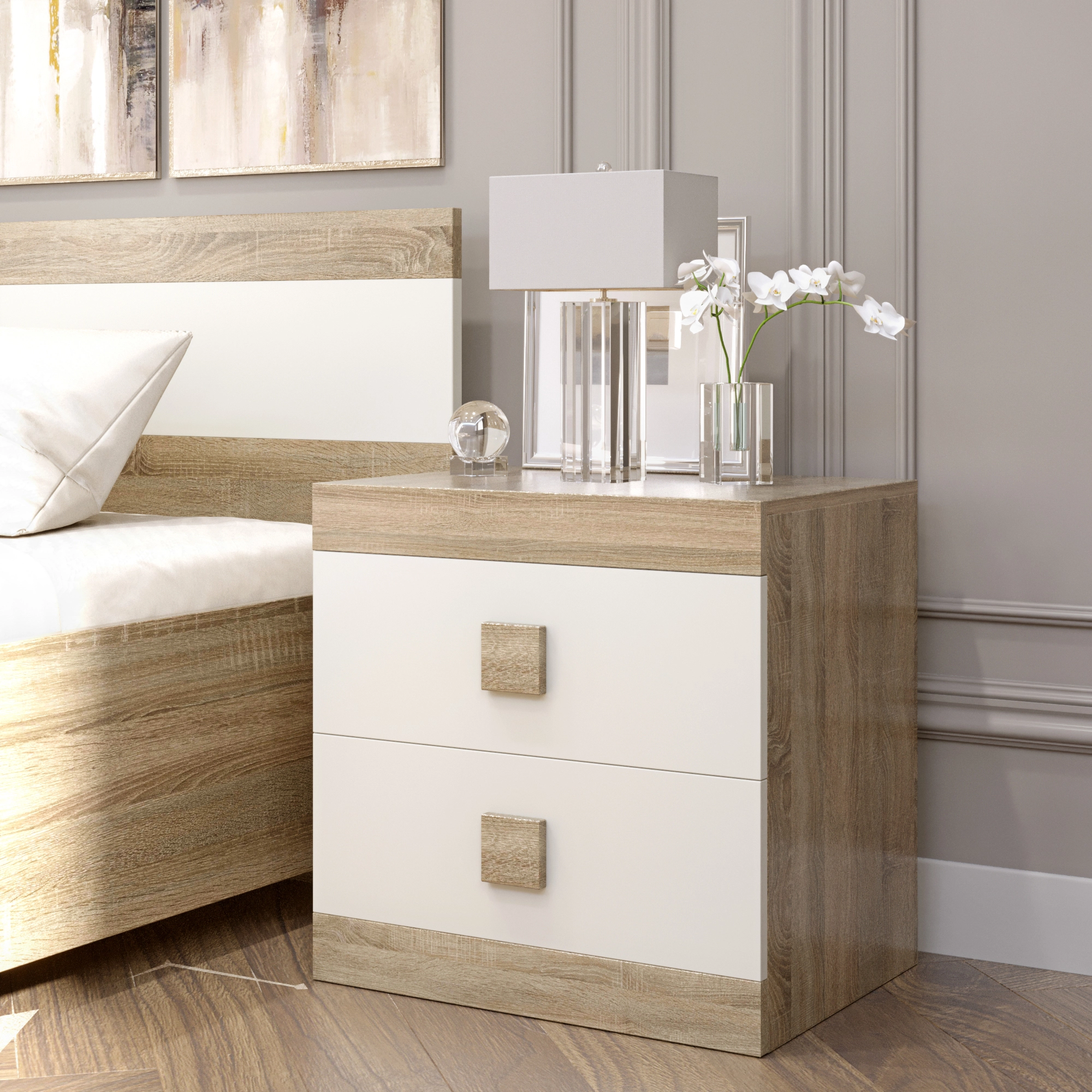 Тумба біля ліжка Еверест Соната 50х38х50 сонома + білий (DTM-2075)