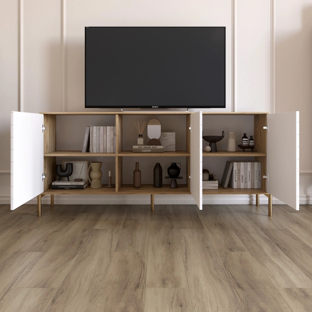 Изготовленная из качественных материалов, тумба под телевизор LION Амарант сочетает в себе надежность и стиль. Дуб сонома трюфель и белый цвет создают гармоничный контраст, подходящий к разным стилям оформления. Вы сможете легко соединить ее с другой мебелью, подчеркивая свой индивидуальный стиль. Эта тумба не только красива, но и функциональна. Она оборудована достаточным количеством полок для хранения техники и аксессуаров, что позволит вам поддерживать порядок в вашей гостиной. Наслаждайтесь комфортом и удобством использования, ведь каждая деталь продумана до мелочей.
