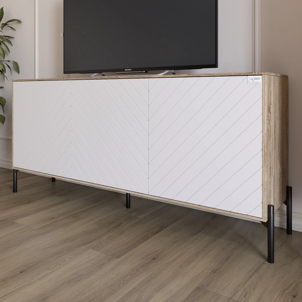 Тумба під телевізор із чорними металевими ніжками LION Амарант 168x40x76,5 см Дуб сонома трюфель/Біл