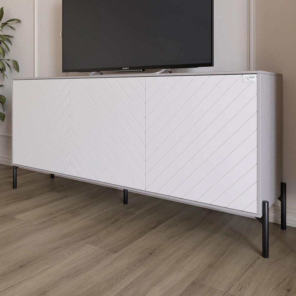 Тумба під телевізор із чорними металевими ніжками LION Амарант 168x40x76,5 см Кашемір/Білий (LION-04